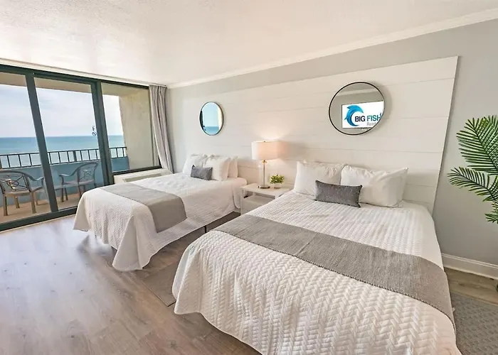 The 139 m² Direct Oceanfront 1Br Ocean Reef - Fantastic View! Apartment Myrtle Beach offers proximity to such tourist attractions as J C Video Games, situated nearly a 5-minute walk away. Around 7 km from the coastal Federal TicketReturn.com Field, this beachfront apartment features a swimming pool and a private garden.